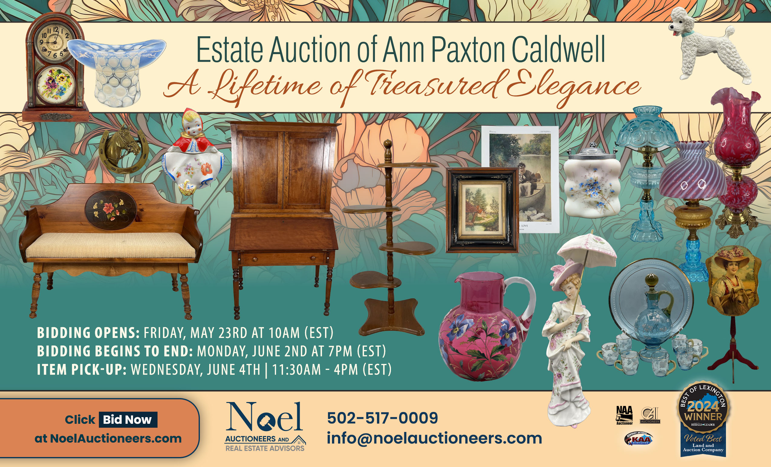 Join us for a remarkable online estate auction honoring the life and legacy of Ann Paxton Caldwell of Lexington, KY. This curated event offers a rare opportunity to acquire timeless pieces from a beloved educator and lifelong collector who filled her home with warmth, history, and refined taste.
