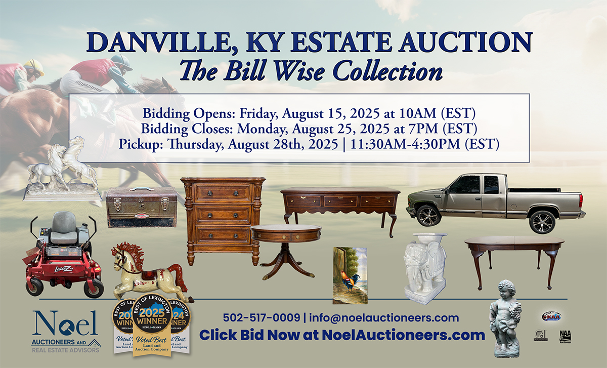 • Preview Date / Time: No In-Person Previews Available. For more information or additional details on any lot, please contact: Brad Noel at 859-613-04503 or info@www.noelauctioneers.com