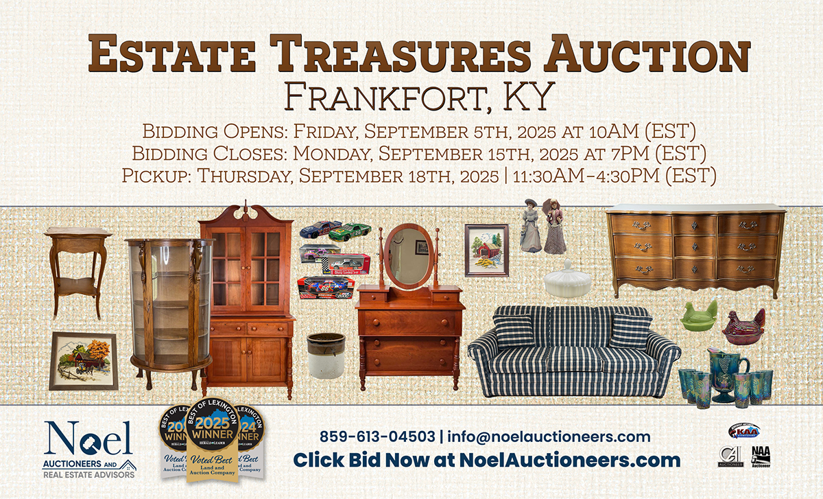 Discover a remarkable collection of estate treasures at Noel Auctioneers & Real Estate Advisors in Frankfort, Kentucky! This exciting auction features an eclectic mix of items perfect for collectors, homeowners, and bargain hunters alike.