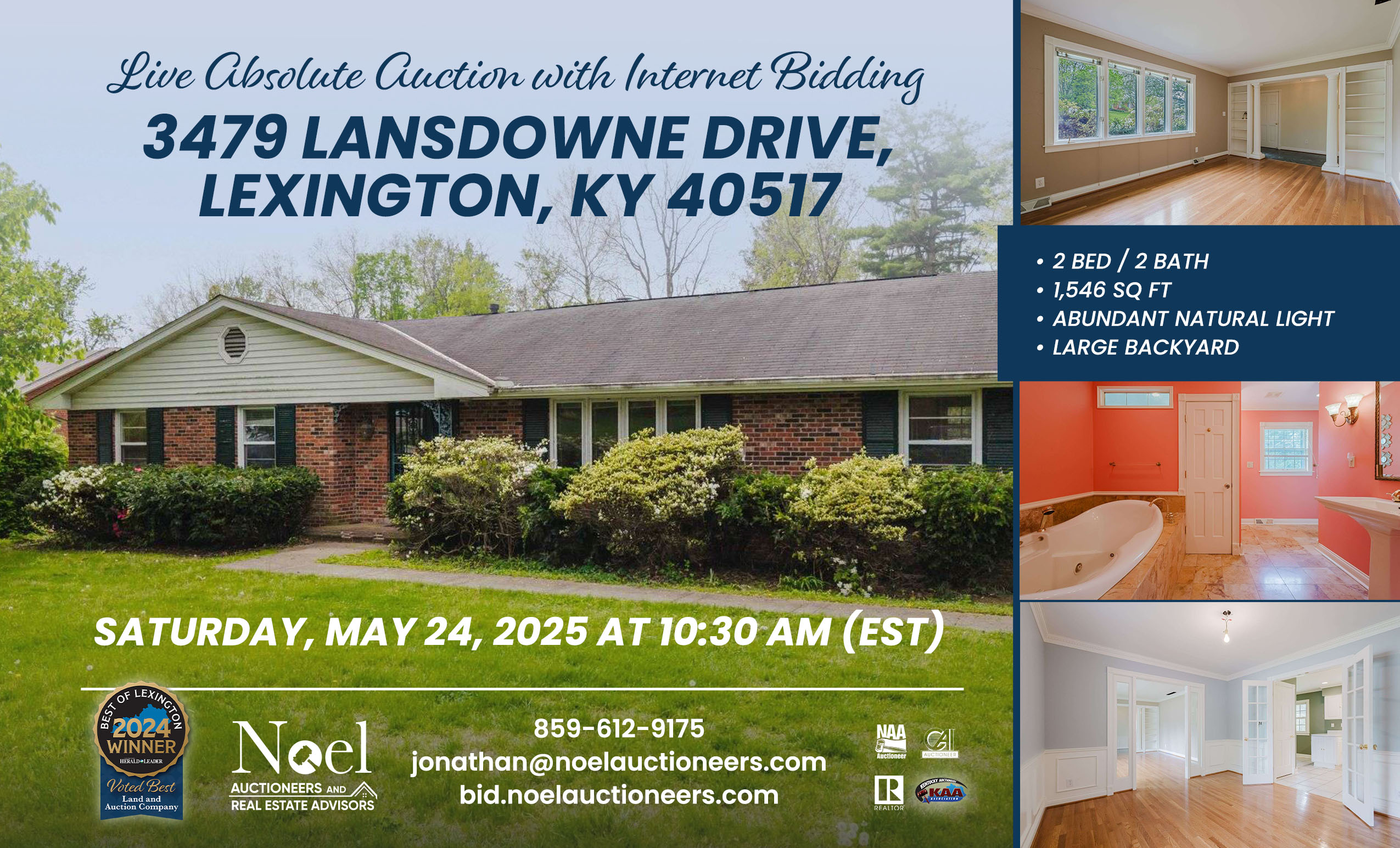 For additional details, you can contact Noel Auctioneers & Real Estate Advisors at 859-612-9175. Jonathan Noel acts as the Auctioneer for this event.