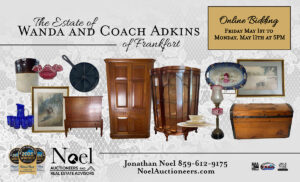The Estate of Wanda & Coach Adkins of FrankfortBidding Opens: Friday, May 1st at 10:00 AM (EST)Begins Closing: Monday, May 11th at 5:00 PM (EST)Pickup:Pickup: Thursday, May 14th, 2026 | 11AM - 4PM & Friday May 15th | 11:30AM - 4PM EST