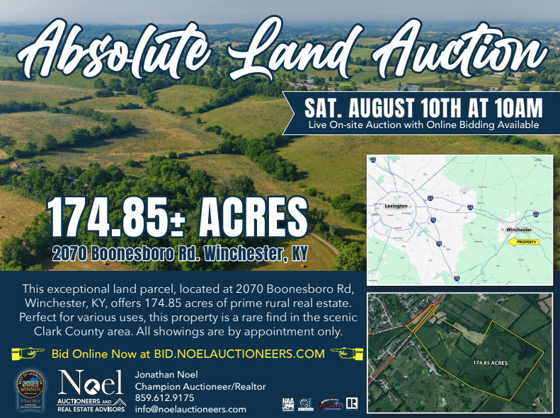 Prime Land Opportunity in Winchester, KY - This was a large land auction that utilized a lot of different marketing avenues to reach the largest target audience possible. This auction had a large digital presence in order to target the proper customer base.