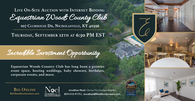 Equestrian Woods Country Club had long been a premier event space, hosting weddings, baby showers, birthdays, corporate events, and more. Situated in Northern Jessamine County, just south of the Fayette County line, the property boasted a clubhouse building, junior Olympic-sized in-ground pool, pool house, multiple covered patios, and a garden/patio area. With multiple dining rooms, second-floor offices, and a commercial kitchen the property had a lot to offer.