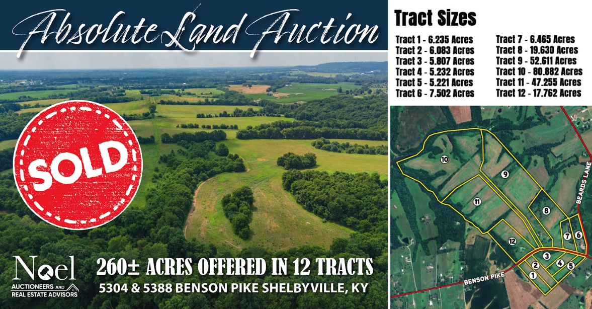 Noel's ability to sell high acre property with ease was apparent in this auction that boasted 260+/- acres of prime real estate in Shelbyville, Kentucky.