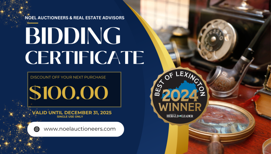 $100 Noel Auctioneers Bidding Certificate(valid through 12/31/2025)